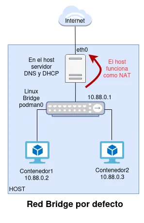 - La red bridge creada por defecto por Podman para que de forma predeterminada los contenedores tengan conectividad.