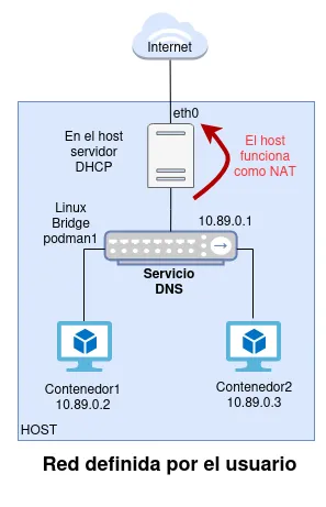 --network=podmandepodman run. - Se crea en el host un Linux Bridge llamado podman0.